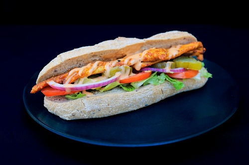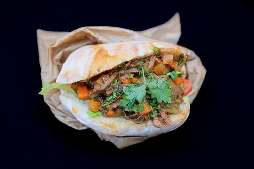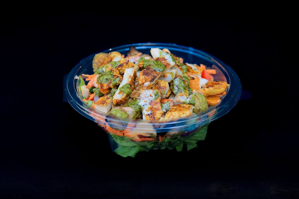 A blend of chopped tomatoes and peppers, seasoned with our house spices, topped with two eggs, and served with your choice of add-ons and half a baguette.